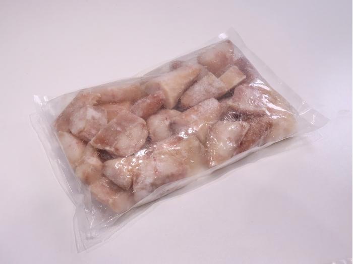 皮を引いたあんこうをぶつ切りにしました。(骨付き)やや大ぶりの30~40gにカットしました。柔らかく上品な味わいが特徴です。唐揚げ・鍋などにお使いください。