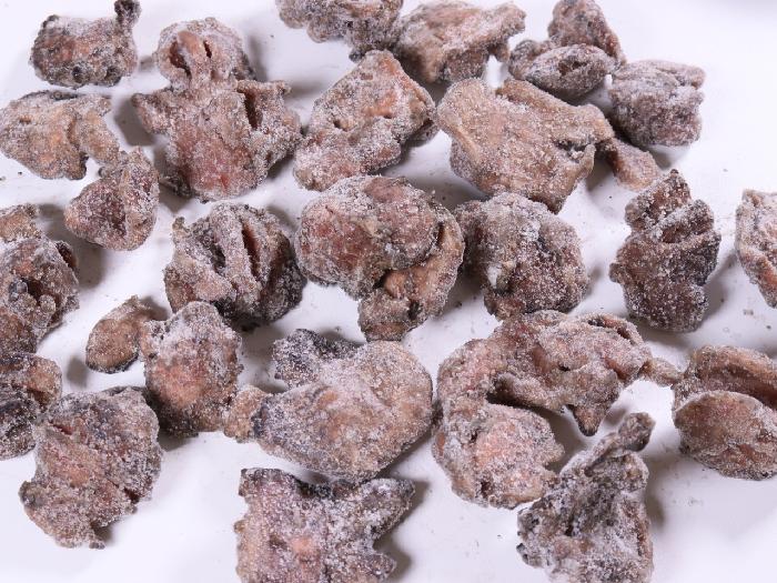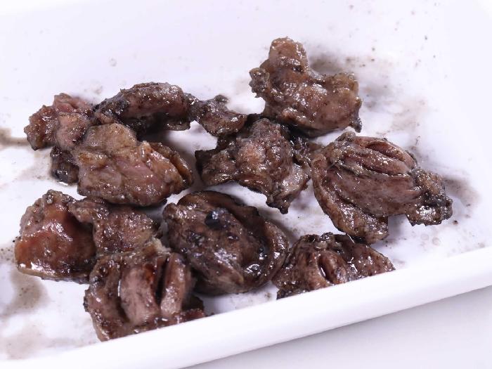 鶏砂肝、植物油脂、食塩、ぶどう糖、砂糖、香辛料、小麦粉/加工でん粉、炭酸Na、調味料(アミノ酸)、(一部に小麦・大豆・鶏肉を含む)