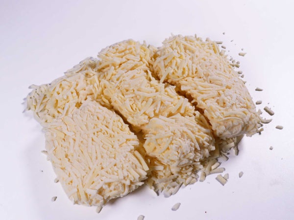 ナチュラルチーズと植物油脂加工品を2対8の割合でブレンドしたシュレッドミックスです。ナチュラルチーズと混ぜて使用したり、完全に置き換えて使用することでコスト改善につながります。