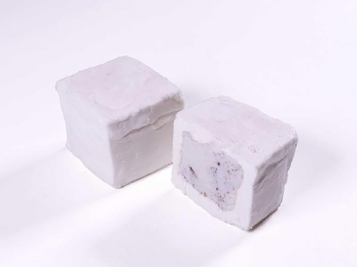 1個約70g、5cm角程度。凍っていてもやわらかなマシュマロなので、保存中のつぶれやくっつきにご注意ください。