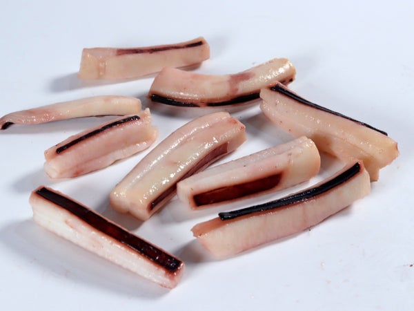 いか耳といっても肉厚で、長さは5~6cmほど、太さは1~1.5cmほどあります、(ばらつきはあります)