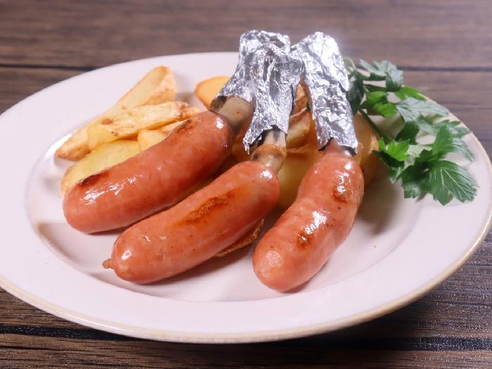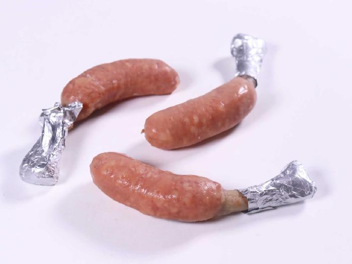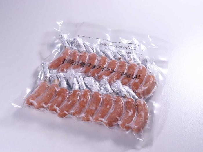 原料肉にポーク&チキンを使用し、25gという小さいサイズですが、骨付なので、小さくても存在感があり、豪華に見えます。単品メニューやイベント・宴会コースメニューにもおススメのウインナーです。ケーシングに羊腸を使用し、本格的なウインナー食感が味わえます。オードブルの一品に入れて頂ければ、ボリューム感と存在感が出せる商品です。