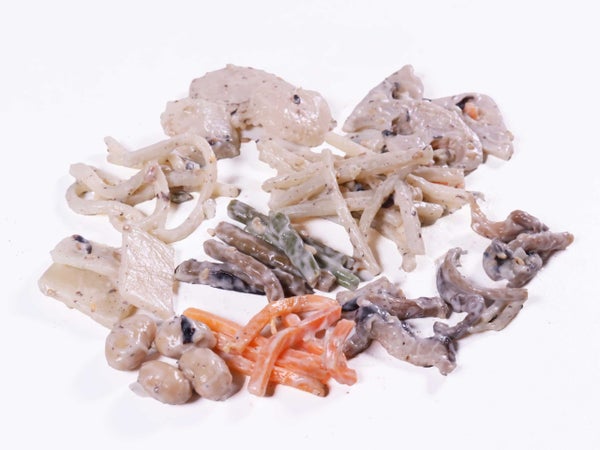和の食材を中心に、具材の食感や存在感にこだわった15種類の素材を使用したサラダです。日本人の好みに合う醤油入りのマヨネーズ仕立てで、そのままはもちろん、他の素材と合わせてもご使用いただけます。