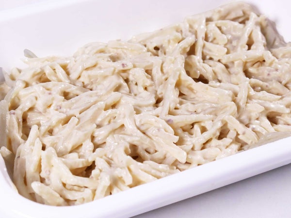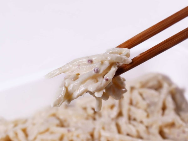 細切りにカットしたじゃがいものシャキッとした食感が活きています。ディジョンマスタードのコクとピリッとした辛さが特長のサラダです。畜肉系の素材と合わせてパンメニューやサラダメニューに最適な一品です。