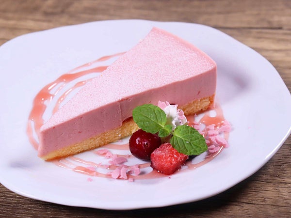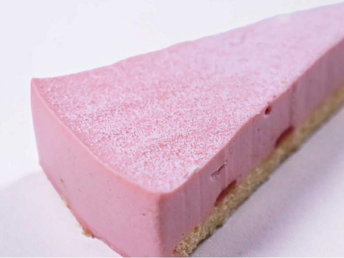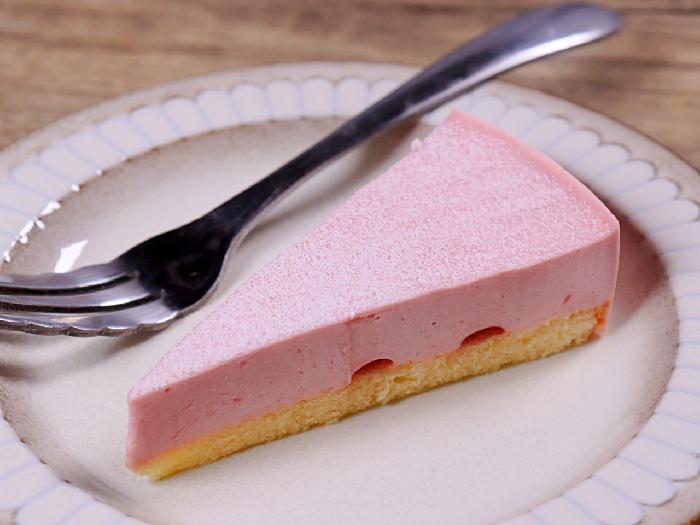 かわいいピンク色の、甘酸っぱいいちごムースケーキ。