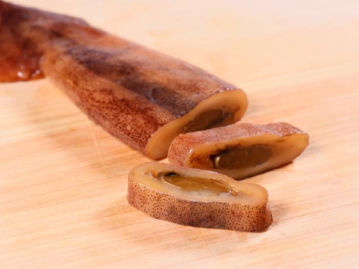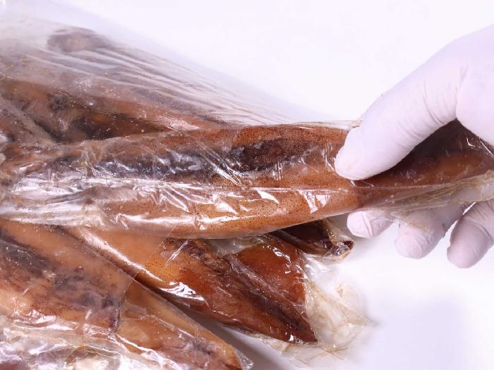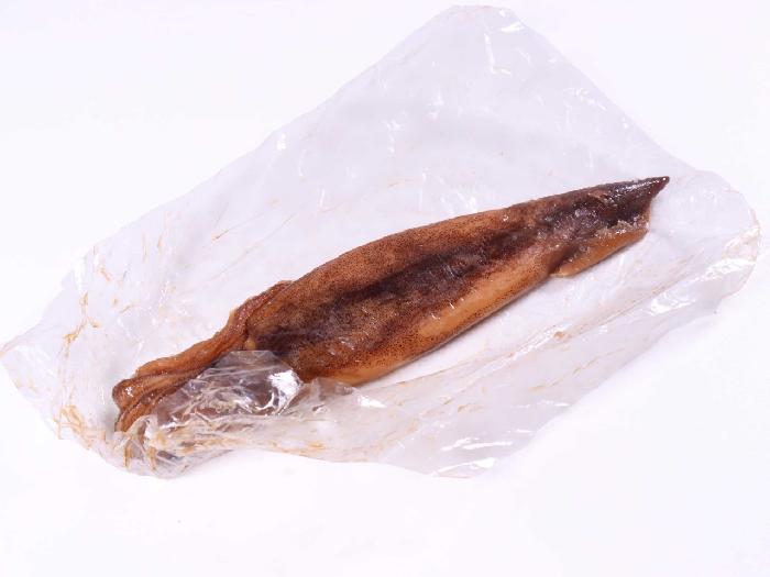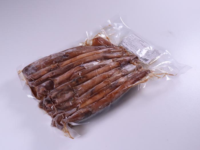 北海道産するめいかの小型のものを厳選し、丸ごと沖漬けにしました。濃厚な肝の旨みが特徴です。1尾ずつシートを巻いてあるので1尾ずつ取り出すことができます。凍ったままカットすると肝ごときれいに切ることができます。