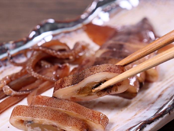 スルメイカ(北海道沖)、醤油(小麦・大豆を含む)、発酵調味料/ソルビット
