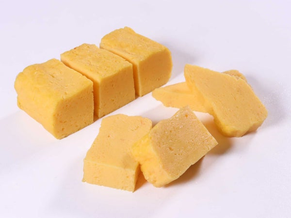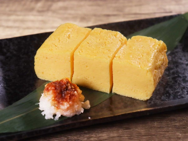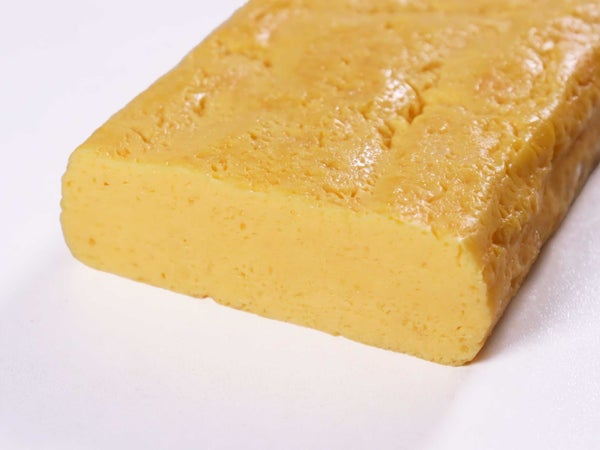 きめが細かく、焼き色(焦げ)もない、山吹色のきれいなたまご焼きです。
