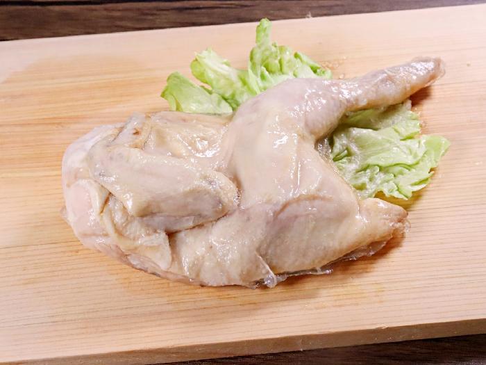 半身の鶏をスチームで加熱してあるので、揚げ時間が短縮できて中もふっくら仕上がります。