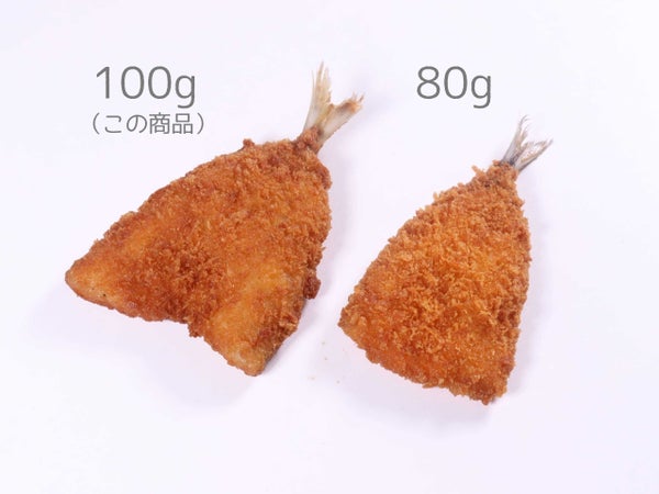 大きめ100gのアジフライ。食事だけでなくおつまみ料理提供にもいいサイズです。