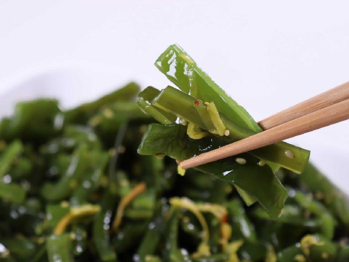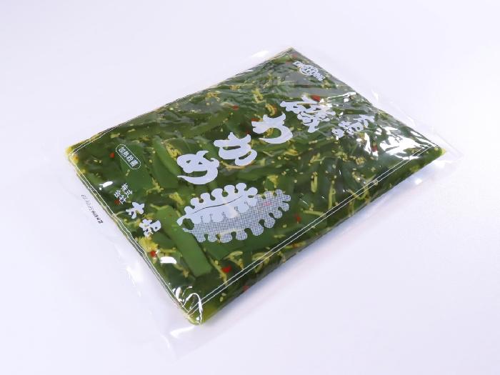 コリコリとした食感の茎わかめを生姜が効いた調味料で味付けしました。お通し・弁当に最適の一品です。