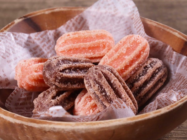 ミックス粉(でん粉、クラッカー粉、ショートニング、粉末植物油脂、卵黄粉、卵白粉、食塩、小麦粉)(国内製造)、フィリング(砂糖、高果糖液糖、植物油脂、水あめ、加工油脂、乳清たん白、牛乳、卵黄粉、濃縮いちご果汁、卵白粉、寒天)、植物油脂/加工でん粉、カゼインNa、乳化剤、着色料(紅麹、クチナシ)、増粘多糖類、香料、酸味料、ベーキングパウダー、酢酸Na、(一部に小麦・卵・乳成分・大豆を含む)