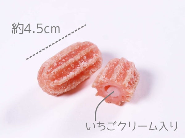 長さは約4.5cm。名前の通りパクっとお口に入ります。揚げたては中のいちごクリームが熱いのでご注意!