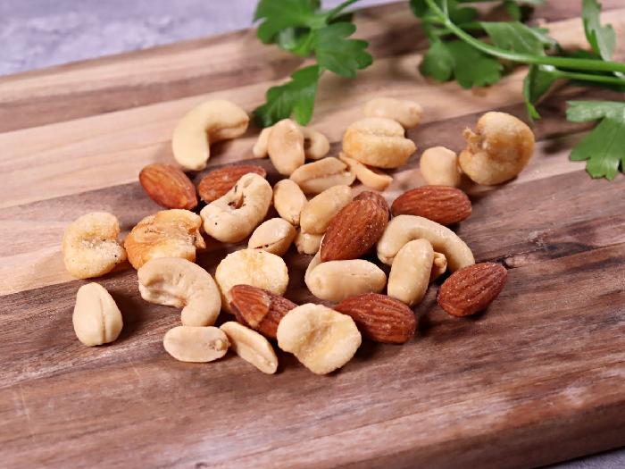アーモンド・カシューナッツ・ジャイアントコーン・ピーナッツを混ぜ合わせた、白トリュフが芳醇に香る、ほどよい塩味のミックスナッツです。
