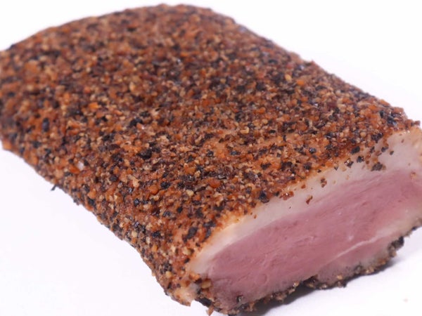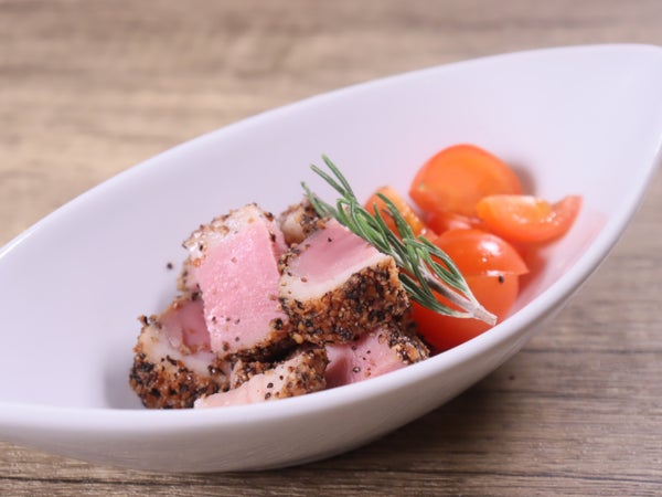 お好みの厚さと枚数でご提供ください。胡椒がしっかり付いているので、薄めでもぴりりと風味を効かせます。