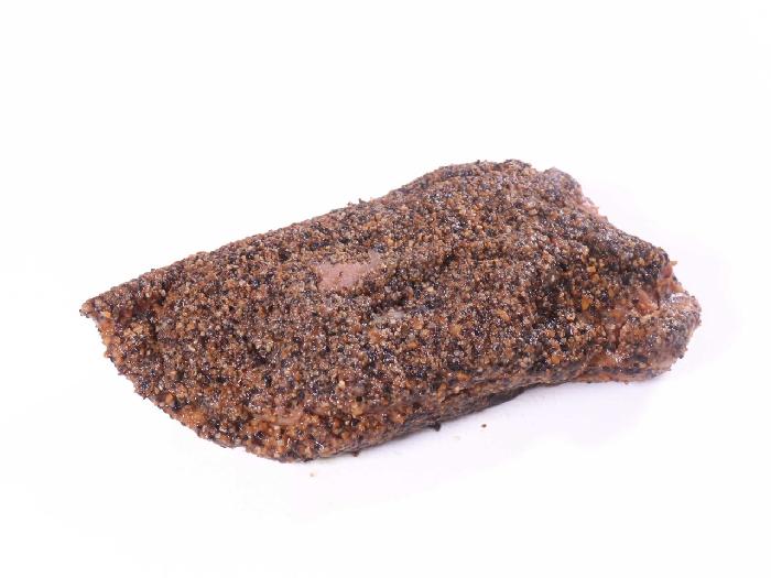 細かめの黒胡椒をびっしりとまぶしたパストラミタイプ。