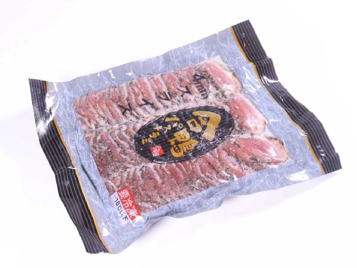 スライス済みなので、手軽に使用することができます。細かめの胡椒をまぶしたパストラミタイプ。