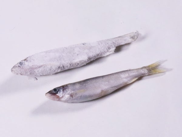 岐阜県でとれた稚鮎に粉付けをしました。骨が柔らかく、鮎特有の爽やかな香りとほろ苦さが後を引きます。そのまま揚げて唐揚げとして提供するほか、衣を付けて天ぷらや南蛮漬けなどにしてもおすすめです。
