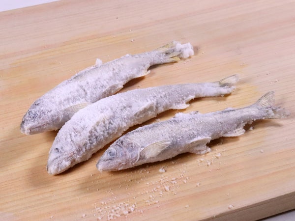 岐阜県で育った稚鮎に粉付けをしました。味付けはしていません。
