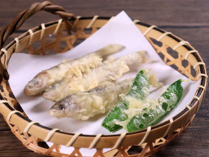 岐阜県でとれた稚鮎に粉付けをしました。骨が柔らかく、鮎特有の爽やかな香りとほろ苦さが後を引きます。そのまま揚げて唐揚げとして提供するほか、衣を付けて天ぷらや南蛮漬けなどにしてもおすすめです。