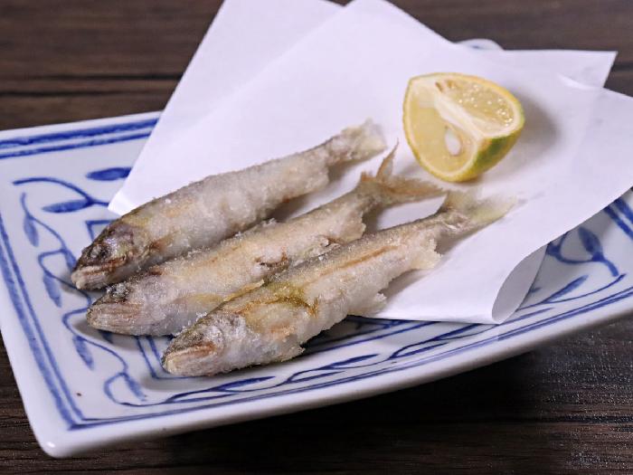 そのまま揚げて唐揚げに。骨が柔らかく、鮎特有の爽やかな香りとほろ苦さが後を引きます。