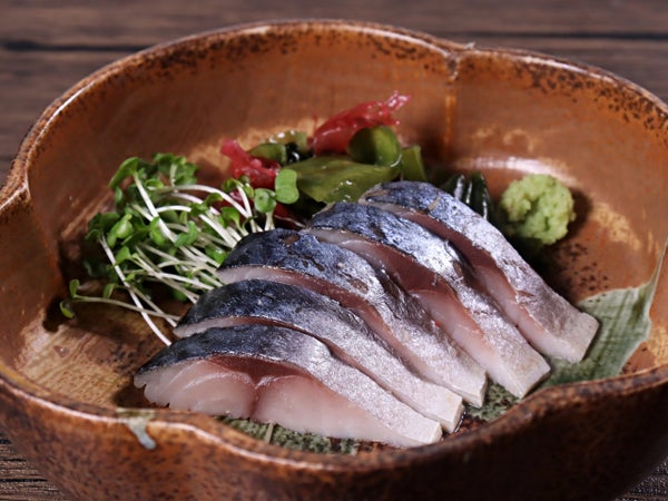 鹿児島県産さばと薩摩黒酢を使用。酢の入りはおだやかで、刺身感のある浅〆です。