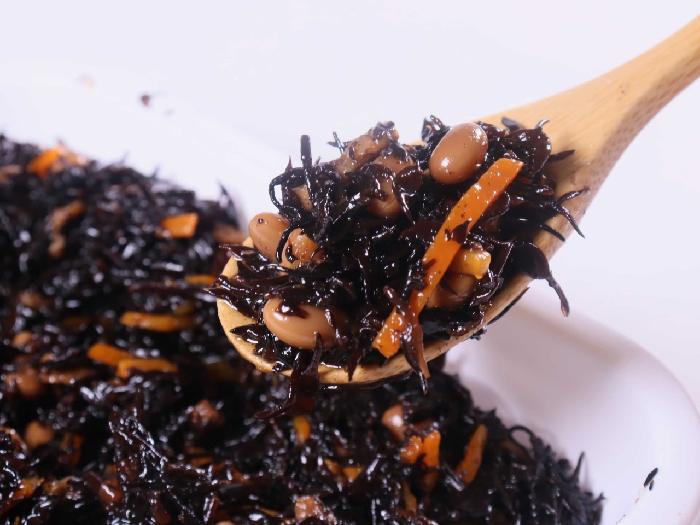 ひじき・大豆・人参・油あげが入った、具だくさんのひじき煮です。かつおと昆布の風味を効かせてやわらかく仕上げました。コストパフォーマンスに優れた商品です。