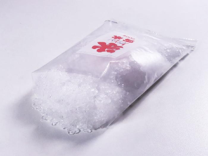 高度な製氷技術で作られた、透明で硬くとけにくい氷を削った袋入りのかき氷です。