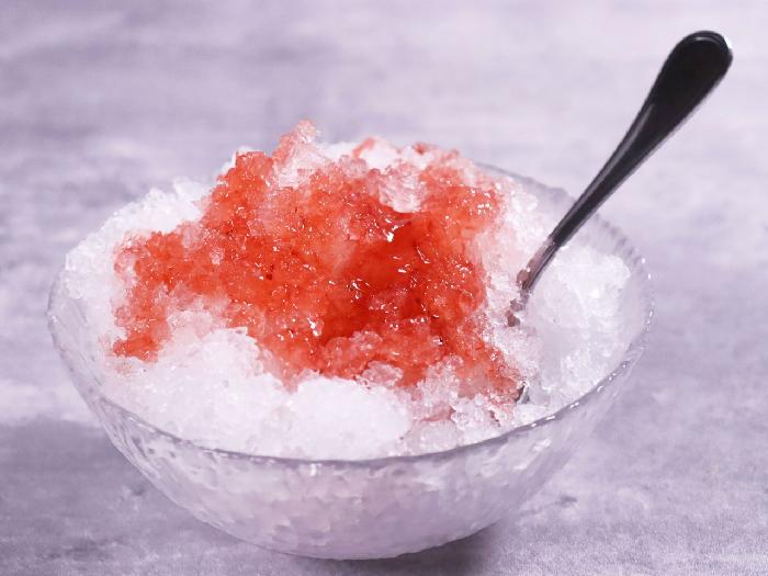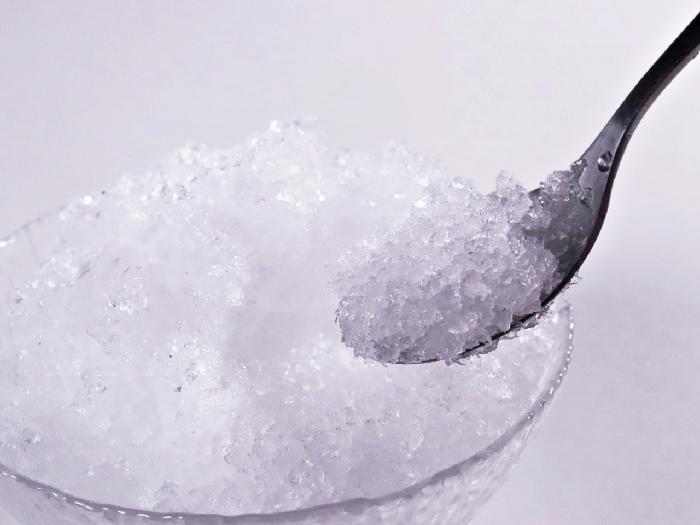 やや粗めの氷粒。わずかに砂糖を使用していますが、品質保持のためで味覚的な甘みではありません。