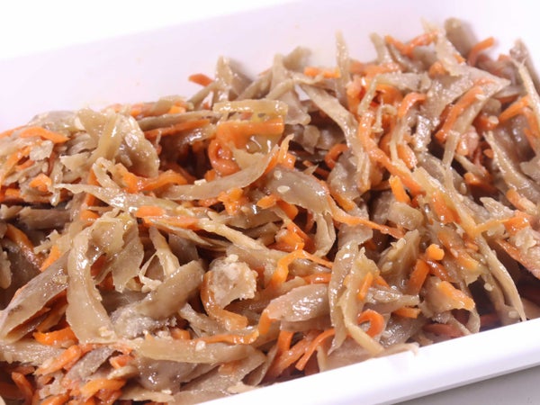 ささがきごぼう・にんじんを煮汁が無くなるまで炒めた、手作り感のある金平ごぼうです。