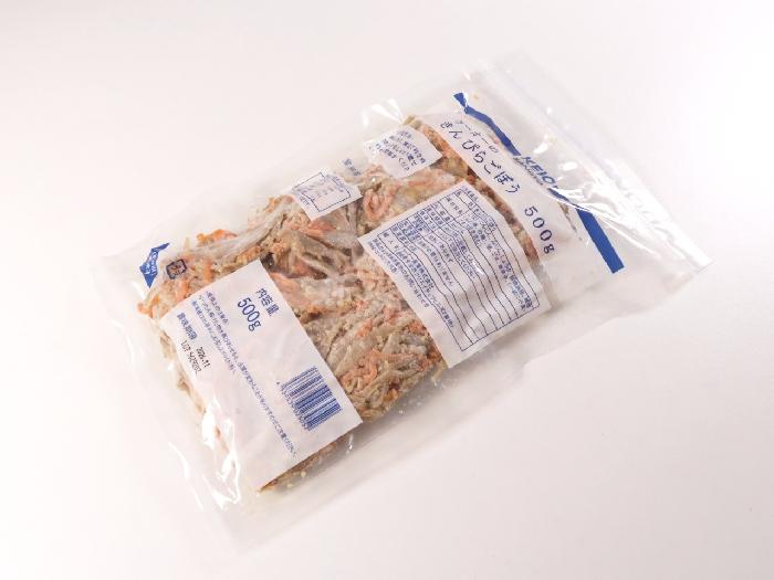 ごぼうにしっかり煮汁を吸わせているので、冷凍状態でも手でほぐして取り出せるくらいです。チャック付き袋入り。