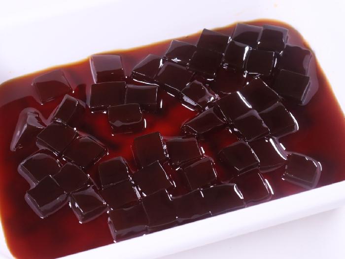 沖縄県産黒糖を使用した、深みのある味わいの黒糖風味カットゼリーです。