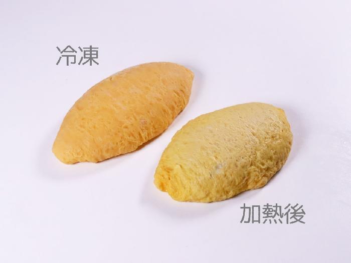 たまごの色が冷凍時はオレンジ色っぽいですが、加熱すると黄色くなります。