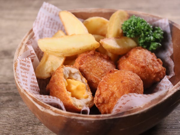 国産の鶏肉を使用したチキンナゲットの真ん中にチーズを注入しました。口の中でチーズが広がり、しっかりチーズの味わいを感じることができる仕立てです。
