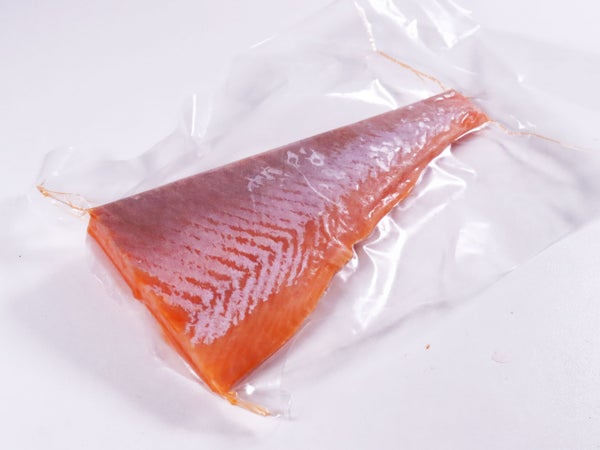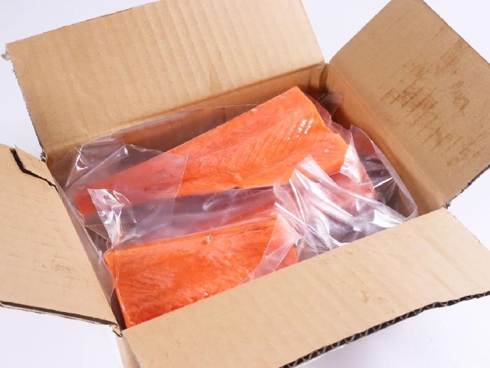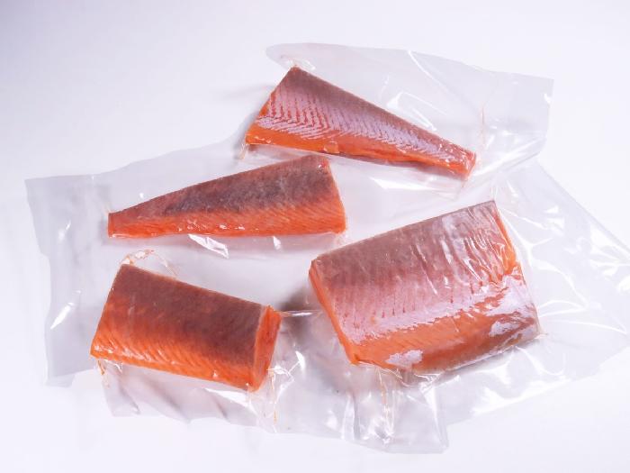 生食用の銀鮭ロインを使いやすい大きさにカットし、個包装にしました。背・腹各2個ずつ、計900gUPに仕立てました。ロスも出にくく、手軽にサーモン刺しが提供できる、大変便利な商品です。