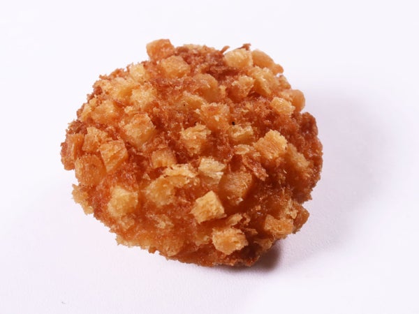 チーズフォンデュをイメージしたクリーミーなコロッケです。チーズに白ワインを加えて深みを演出した中種に、クルトン入りの衣をつけました。コクのある濃厚なチーズの味わいがお酒に合います。
