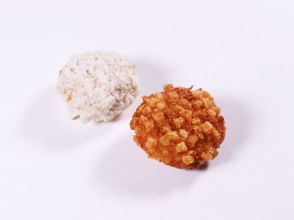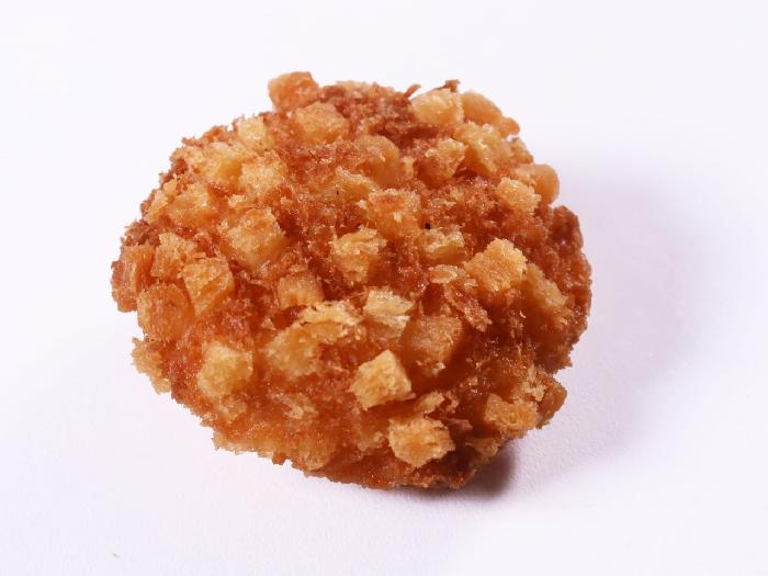 ザクザクとしたクルトン衣が、中のクリーミーなソースと対比的な食感です。