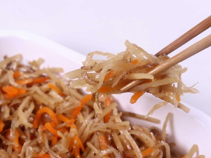 ごぼうとにんじんのスタンダードな金平ごぼうです。野菜の素材感を活かした、食べやすい味付けに仕上げました。コストパフォーマンスに優れています。お通し・弁当・定食の小鉢などにお使いください。