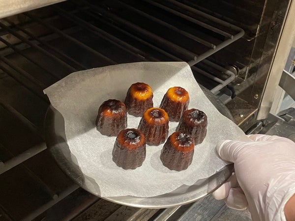 釣り鐘のような形としっかりした焼き色のフランスの伝統的な焼き菓子です。外側はカリッと中はしっとりとした食感で、バターと洋酒の風味を感じます。
