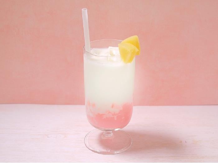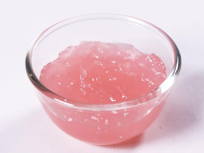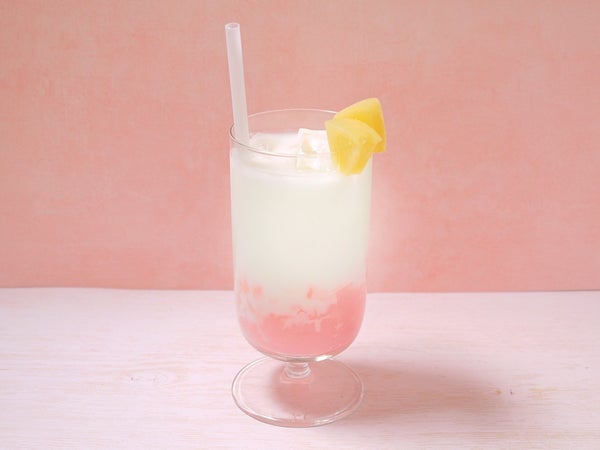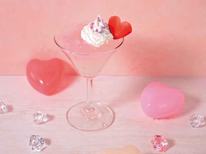 もも果汁を使用した淡いパステルピンクのクラッシュジュレ。フォトジェニックなスイーツや飲むゼリー入りドリンクに。