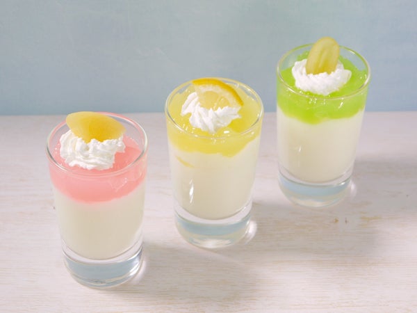 ゆるっとかわいいパステルカラーのクラッシュゼリーです。ももの果汁を使用した、メニューに合わせやすい、やさしい風味のゼリーに仕上げています。