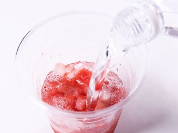 シンプルに炭酸水を加えるだけでもおいしい!冷凍果実のシャリシャリしたドリンクが楽しめます。無味・無糖のソーダなどは約125mlが目安です。