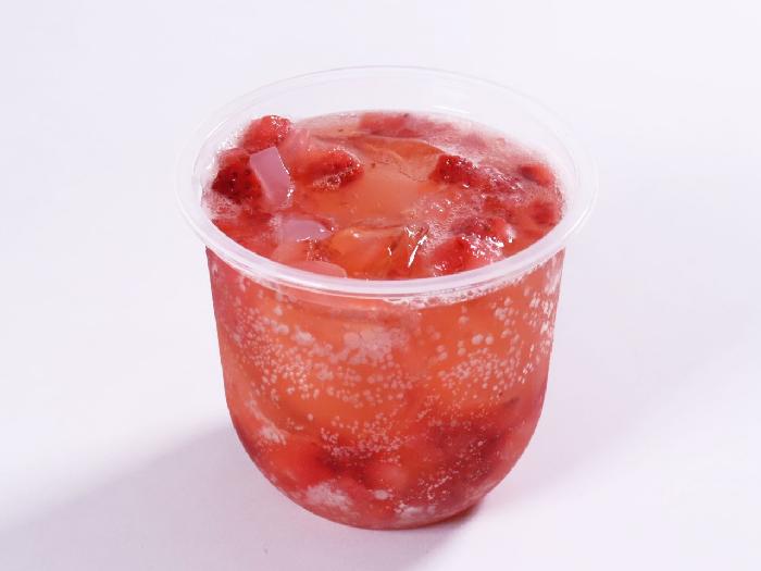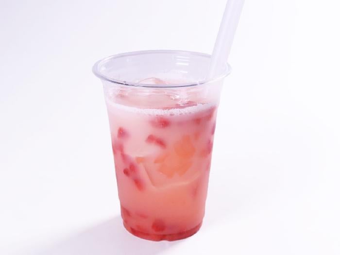 角切りいちごたっぷり!台湾レモンの酸味を加えて味を引き締め、ストロベリーの甘さを引き立てています。ナタデココは、タピオカストローで吸える大きさにカットされています。