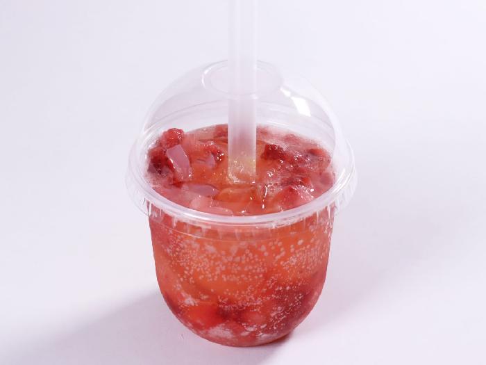 冷凍のまま、軽くほぐしてお好みのドリンク(紅茶・ジャスミン茶・炭酸水など)約125mlと氷を加えてください。