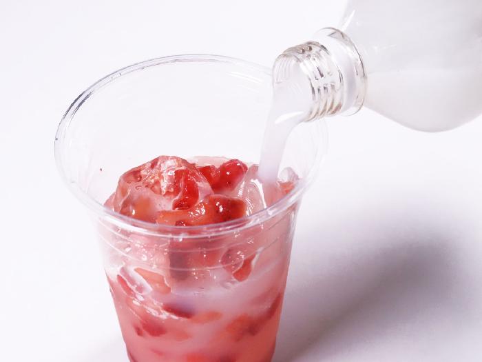 甘みつきのドリンクやお酒で作る場合はお好みの量を加えてください。写真は乳酸菌飲料を使った例です。