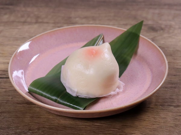 直径約4.5cmのちいさな桃まんです。桃のかたちとほんのり桃色がかわいい。