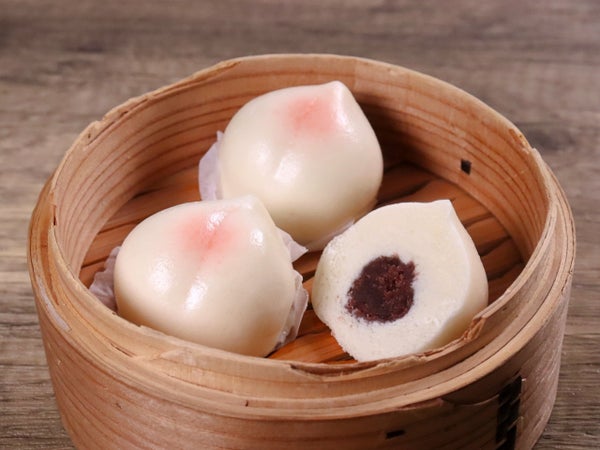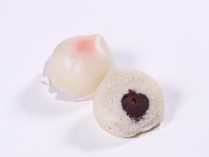 グラシン紙の付いた、小さくてかわいいサイズの桃まんです。中のこしあんも程よい粘度で、生地もふっくら柔らかい仕立てです。