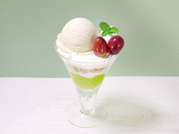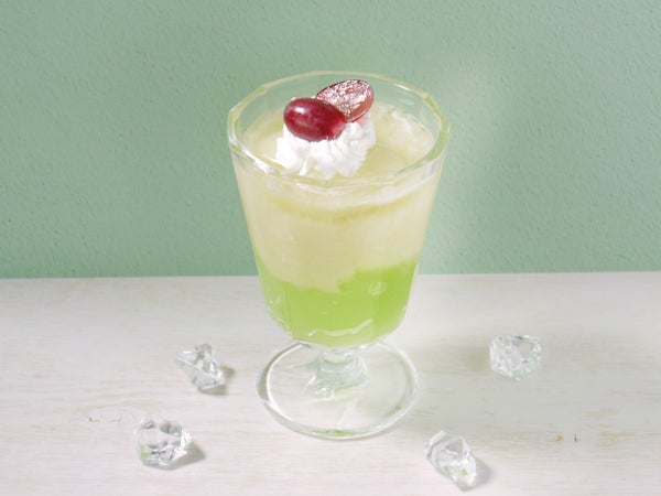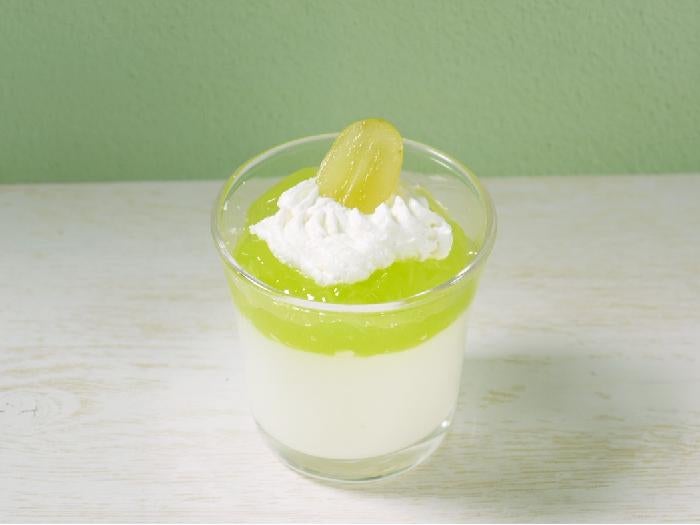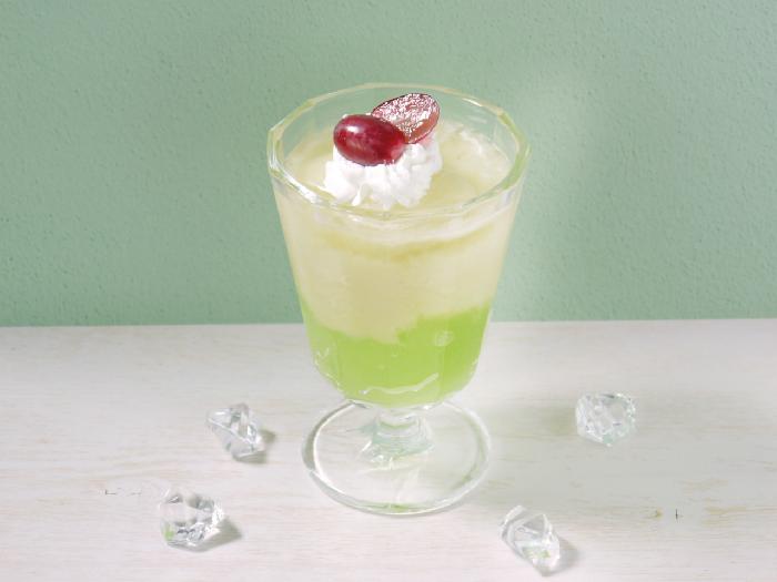 ぶどう果汁を使用した淡いパステルグリーンのクラッシュジュレ。フォトジェニックなスイーツや飲むゼリー入りドリンクに。