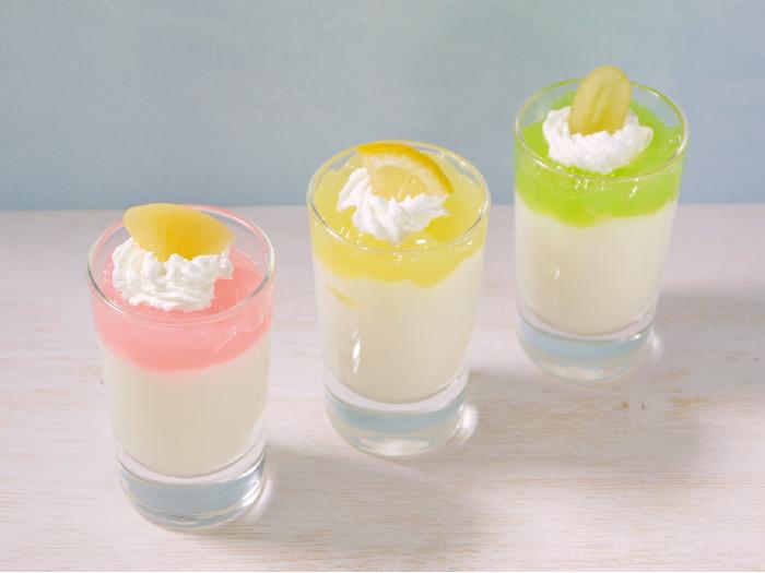 ゆるっとかわいいパステルカラーのクラッシュゼリーです。ぶどう果汁を使用した、メニューに合わせやすい、やさしい風味のゼリーに仕上げています。