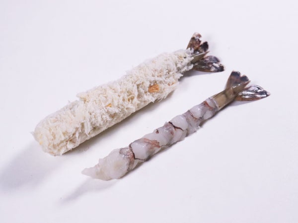 手作業でパン粉付を行ったブラックタイガーのエビフライです。無保水なので、ブラックタイガー特有の風味と食感をお楽しみいただけます。ミックスフライやコンボメニューのメインとしておすすめです。